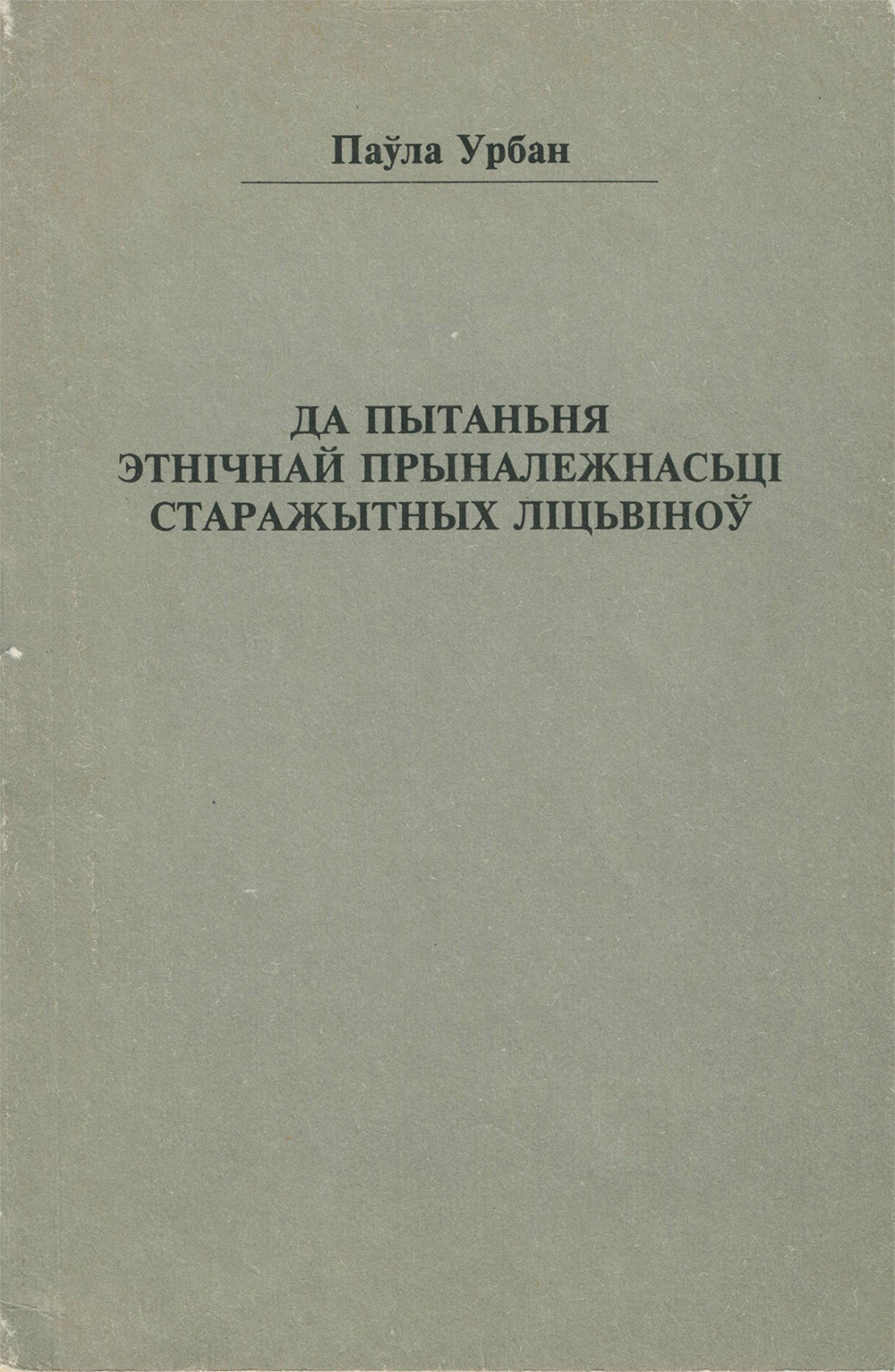 ДА ПЫТАНЬНЯ ЭТНІЧНАЙ ПРЫНАЛЕЖНАСЬЦІ СТАРАЖЫТНЫХ ЛІЦЬВІНОЎ