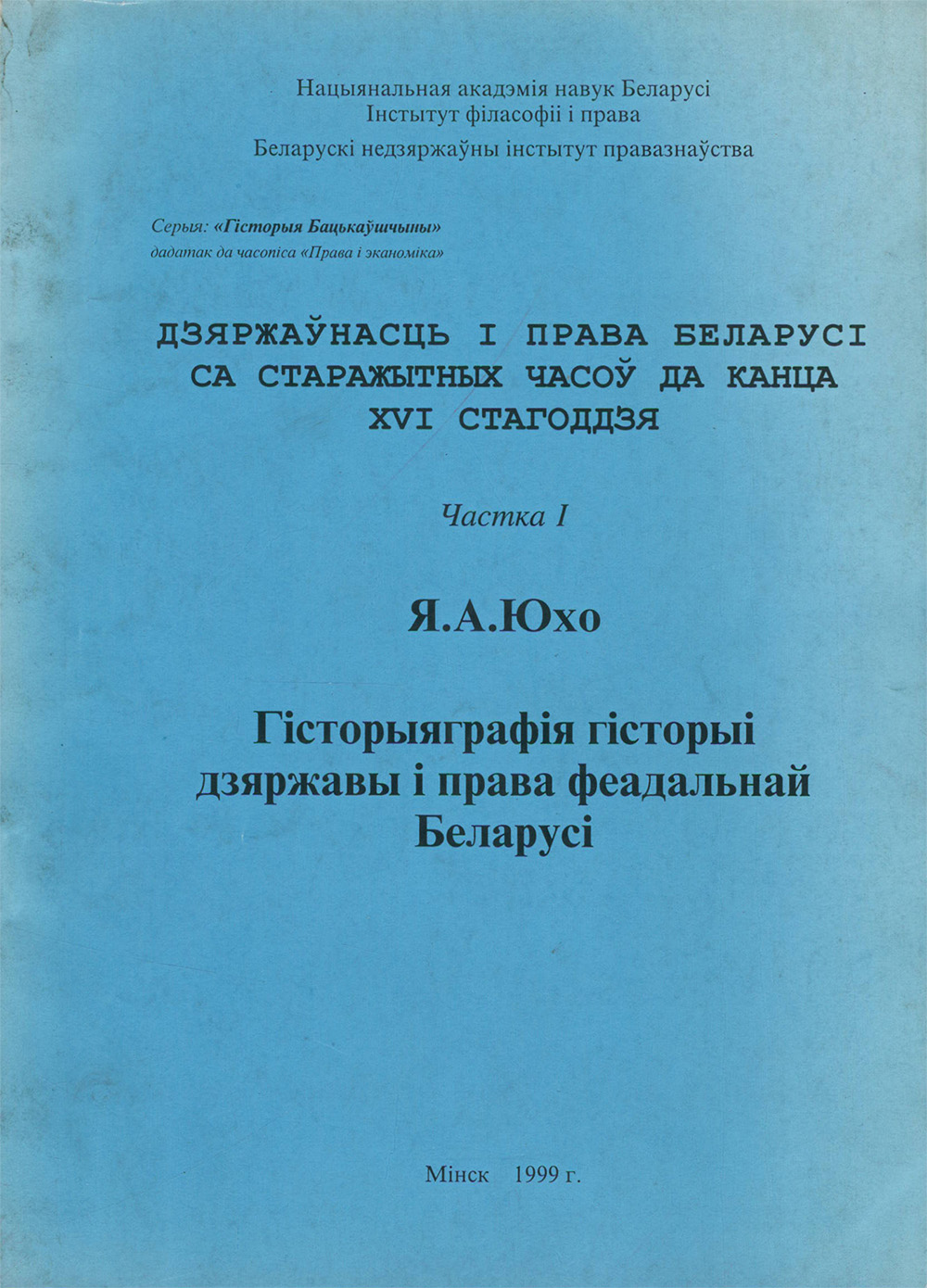 Г'історыяграфія гісторыі дзяржавы і права феадальнай Беларусі. Серыя: «Гісторыя Бацькаўшчыны» дадатак да часопіса «Права і эканоміка». Мн., 1999. 104 с.