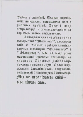 Уваскрашаючы падзеі нашае даўніны, мы абуджаем ад летаргічнага сну нашу памяць, а разам зь ёю і самі ўваскрасаем як эўрапейскі народ.