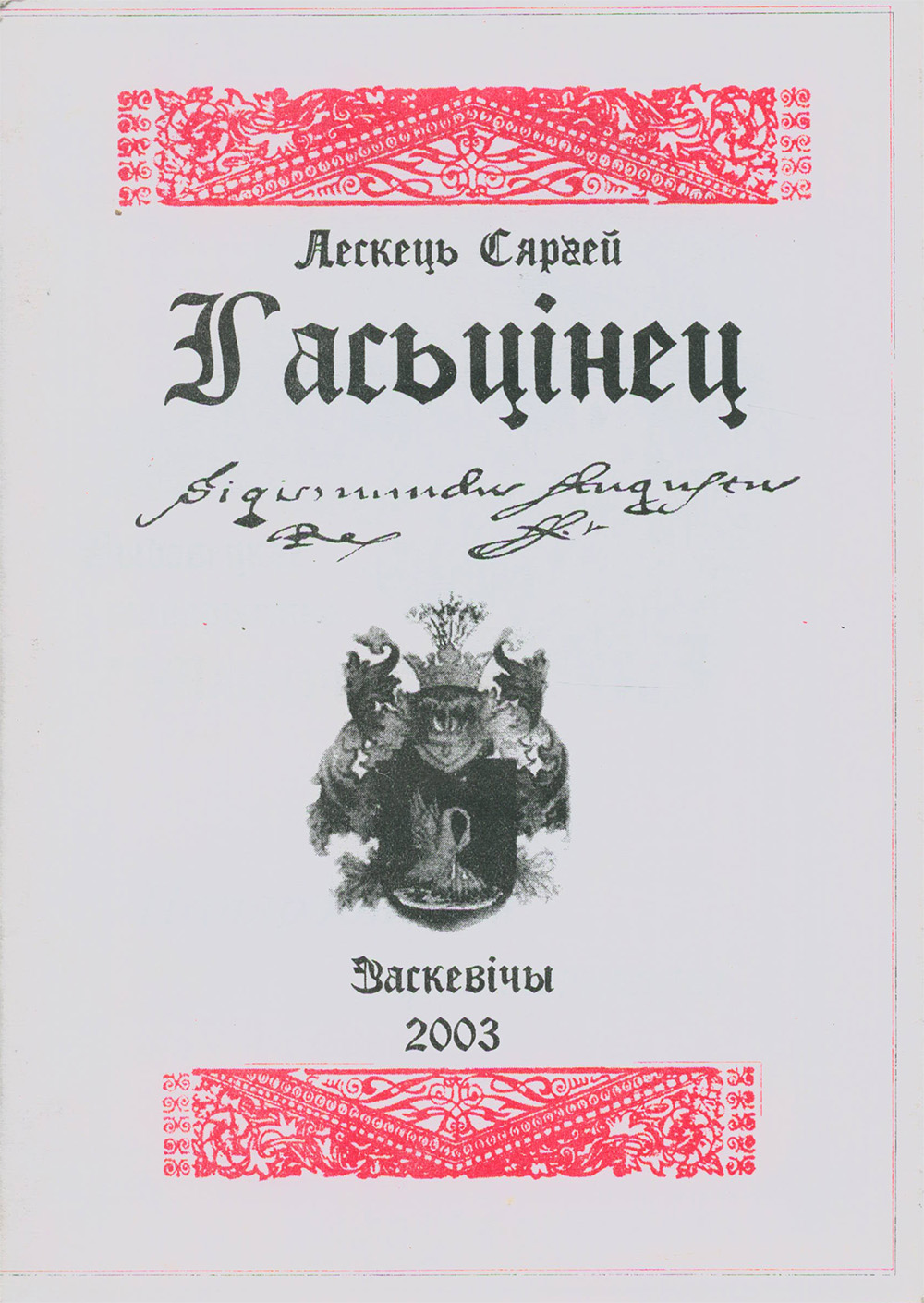 Спадзяюся, гэтая кніга кагосьці натхніць надасьледваньне і ягоннай мясцовасьці. Хачу толькі сказаць, што на самым пачатку акрамя легенды, я зусім нічога ня ведаў. Ды нават і тая легенда апказалася толькі прыдумкай, не адпавядаіочая рэчаіснасьці.