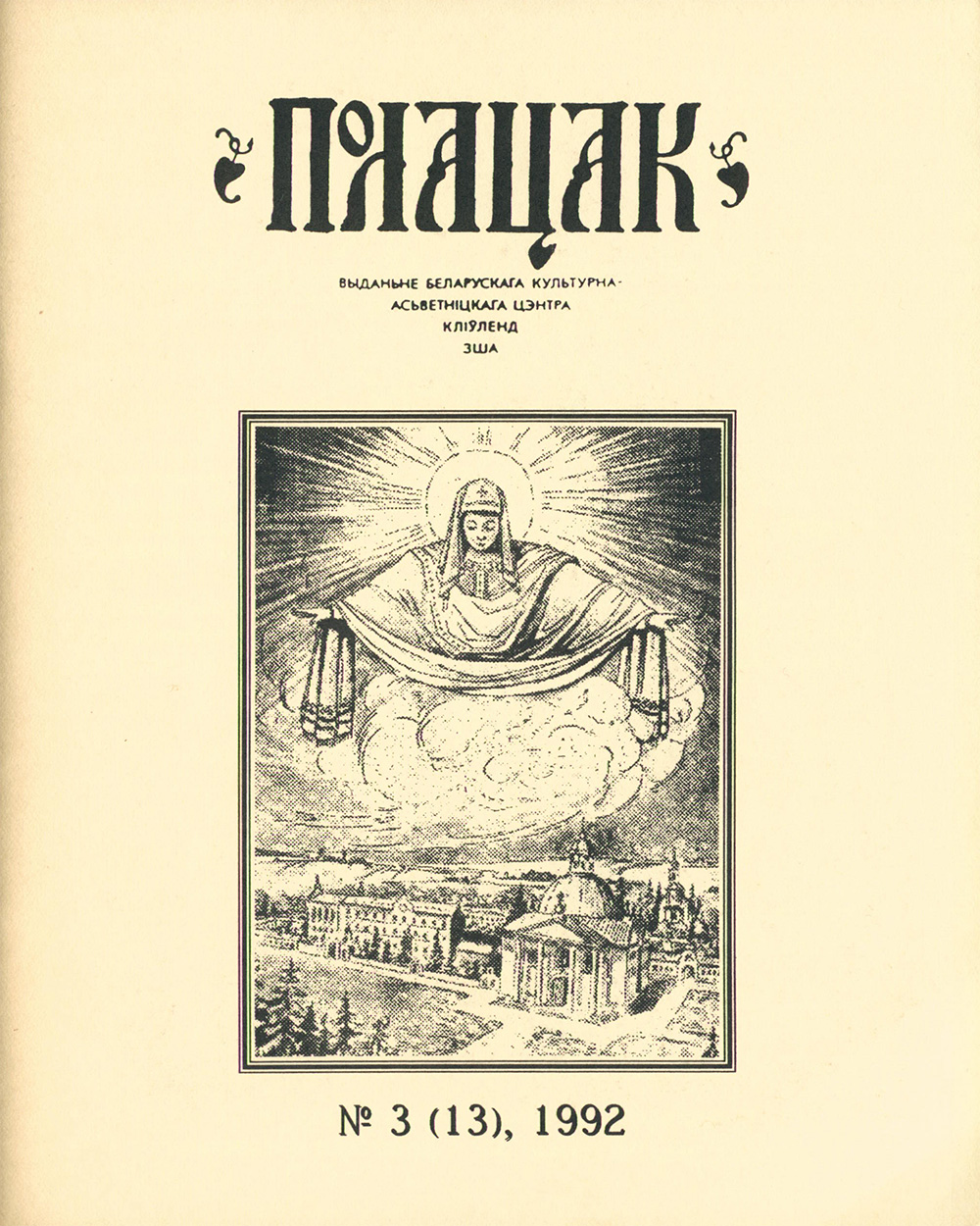 ВЫДАНЬНЕ ЬЕЛАГУСКАГА КУЛЬТУРНА АСЬвЕТНІЦКАГА ЦЭНТРА КЛІЎЛЕНД ЗША № 3 (13), 1992 Polacak Published with the financial support of the parish Mother of God of Zyrovicy, Cleveland, Ohio, USA. Рэдакцыйная калегія:Сьвятлана Белая (рэдактар), Міхась Белямук (сакратар), Янка Салавянюк, сябры Сяргей Карніловіч, Іна Каханоўская, Вольга Дубаневіч (МакДэрмат), Лідзія ЛазарХаненка, Янка Ханенка. Editorial board : Svetlana Belaia (Editor), Michael Bielamuk (Secretary), Jan Solowienuk, Members Serge Kamilovich, Ina Kachanovski, Olga Dubanevich (Me Dermott), Lydia LazarChanenka, Yanka Chanenka. Ганаровыя сябры рэдкалегіі: Анатоль Белы, Васіль Быкаў, Іосіф Юхо. Прозьвішчы падпішчыкаў і ахвярадаўцаў рэдакцыя будзе публікаваць у часопісе. All correspondence should be addressed to: S.Belaia or M.Bielamuk, 10915 Lake Rd., Cleveland, Oh. 44102, USA. Tel. (216) 6513451 Рэканструкцыя касьцюма дзяўчыны XI ст. в.Ворань, Лепельскі раён, Віцебская вобласьць. Барыс Данілюк. Пачуй ,о, Ласкавая Маці 3 ЗБрцало жнтнж Ядзьвіга Дзьвінская. Ён памёр за нас 5 3 архіваў КДБ Аляксандр Цьвікевіч: «Ліквідацыя БНР не была манэўрам» 7 Мікалай Сташкевіч. Юры Смірноў. Палітычны партрэт Зьміцера Жылуновіча (Працяг; 10 Лісты з Бацькаўшчыны Ігар Бараноўскі, Юрась Сьцяпанаў, Анатоль Старадарожскі Навіны нашага жыцьця 14 Наша гісторыя Людміла Дучыц Як апраналіся нашыя продкі 17 Паўла Урбан. Да пытаньня этнічнай прыналежнасьці старажытных ліцьвіноў (Працяг) 23 Міхась Белямук. Эмблема на шчыце герба «Пагоня» (Працяг) 28 Асьветнікі Міхась Дубок. Сьвяты Кірыла Тураўскі 34 Памяць зямлі Лявон Шыман. Мая няволя (Працяг) 36 Успаміны Яўгена Ціхановіча (Працяг) 43 Сьвятлана Белая. Віленскія беларусы расказваюць 48 Вітаўт Тумаш. Віленская Беларуская гімназія 50 Роднае слов Масей Сяднёў. Паэзія 53 Вольга Куртаніч. Каралі 54 Далёкае і блізкае Кастусь Мерляк. Беларусы Аргентыны (Працяг) 56 Чарнобыльскі шлях Панацэя ад радыяцыі 59 Вобразы Бацькаўшчыны Андрэй Карпук. «Мураванка» 60 Валентына Мароз. «Па сонца, па долю!» 62 3 жыцьця эміграцыі 63 На развароце: Міхась Басалыга. Кірыла Тураўскі На першай бачынцы вокладкі: ікона Прэсьвятой Багародзіцы з амафорам над Жыровіцкім манастыром На чацьвёртай бачынцы вокладкі: Маламажэйкаўская царква Пачуй, о, Ласкавая Маці... Барыс Данілюк Пачуй, о, Ласкавая Маці, Маю Ты шчырую прасьбу Ды памажы ў маім няшчасьці, Збаўной дарогай накіруй. Блуднымі сьцежкамі ступаю Здалёк ад Божага шляху, Крамя Цябе я ўжо ня маю Надзеі выйсьці, каб з граху. Ты ўсіх гаротных Апякунка, Ўпрашальніца за нас адна, Дык не адмоў і мне ратунку— Руку паможную падай. Ўпрасі мне ласку ў Твайго Сына Адрозьніць блага ад дабра, Жыцьця майго, каб каляіна Ў дагодны Богу бок пайшла. Каб быць слугою Божай Волі Як доўга жыць мне застае Й дабра ўчыніць яшчэ даволі Ў вадплату за грахі мае. Было каб лёгкім разьвітаньне, Калі канец жыцыдя прыйдзе, Й маёй душы каб зьмілаваньне На Канцавым здабыць Судзе. 0, ўваж Прабачлівая Маці 3 трывожным сэрцы як прашу: Ня дам у блудзе мне прапасьці, Ад згубы выратуй душу! Малітва «Пачуй, о, Ласкавая Маці» прысьвечаная Жыровіцкае Божае Маці, заступніцы беларускага народу (сьвяткуецца 20 травеня). Гэта ёсьць адна з 16 пабожных і сьвяточных песьняў, якія ўваходзяць у падрыхтаваны Барысам Данілюком зборнічак пад назовам «Душыныя пасьпевы», музыку да якога апрацаваў кампазыгар Уладзімер Бучэль. 3 Пачуй ,о, Ласкавая Маці Словы й мэль. Б. Данілюка Гарм. Ул. Бучэль ^а^ о М J Т2. ЗДДО ЙТЙ Ен памёр за нас Ядзьвіга Дзьвінская Дарагі, любы сэрцу СпасаЕўфрасінь неўскі манастыр. Колькі тут сьветлага, добрага.