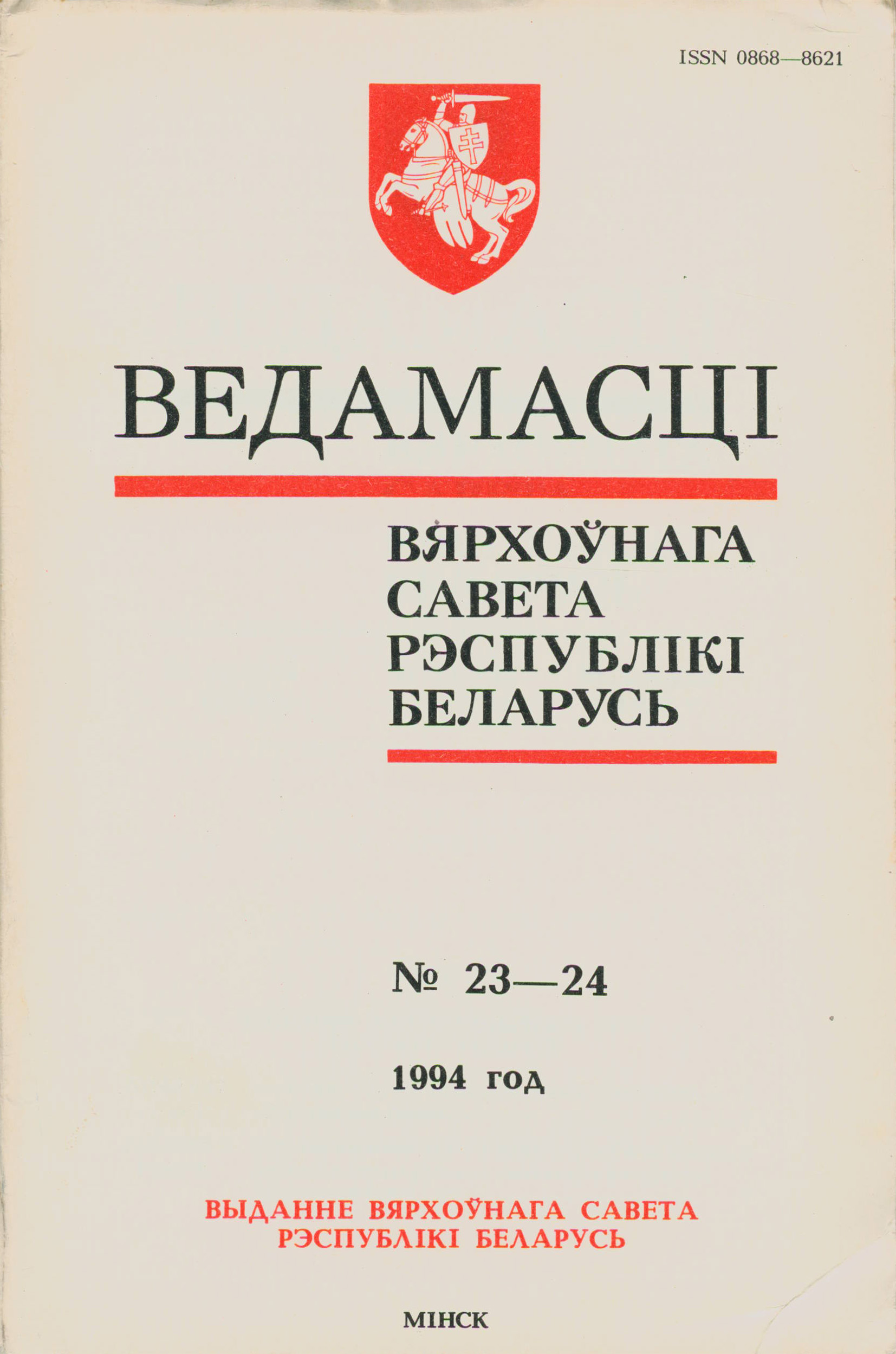 ВЫДАННЕ ВЯРХОЎНАГА САВЕТА РЭСПУБАІКІ БЕААРУСЬ