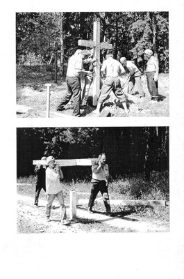 Аднак марная іхная мітусьня. На сьвя-гсій зямлі паўстэе Народны мэмарыял -“ згодна з хрысьяносай традыцыяй, просгы I »влічны. Лес крыжоў узьняўся над мапламі нашых пакутніквў. ЛюдэІ прыходзяць ады, каб наліцца, усжласыіі кветікі, каб дайедацца праўду пра пакуты нашага народу. На працягу апошніх чатырох гадоў сябры Кансэрвдтыўмэ-Хрыеы^янсхай партыі - бнф і Беларускага Народнага Фронту "Адраджэньне" пад кіраўніцтвам Зянона Пазьняка ладзілі штосуботнія талокі.Тэрыторыю добраўпарадкавалі, прыбіралі ад сьмецьця і гальля, усталёўвалі крыжы.