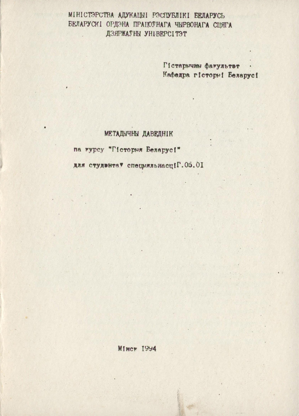 Метадычны даведнік па курсу "Гісторыя Беларусі" для студэнтаў спецыяльнасці Г.05.01