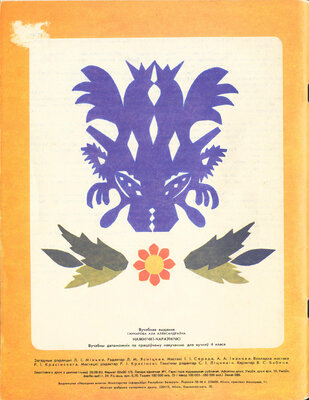 Загадчык рэдакцыі Л. I. Мінько. Рэдактар Л. М. Ясніцкая. Мастакі I. I. Серада, A. А. Іванова. Вокладка мастака Р. I. Красінскага. Мастацкі рэдактар Р. I. Красінскі. Тэхнічны рэдактар С. I. Л і цкев і ч. Карэктар В. С. Бабеня.