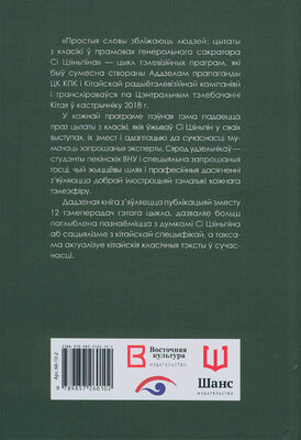 «Простыя словы збліжаюць людзей: цытаты з класікі ў прамовах генеральнага сакратара Сі Цзіньпіна» ——цыкл тэлевізійных праграм, які быў сумесна ство-раны Аддзелам прапаганды ЦК КПК і Кітайскай радыётэлевізійнай кампаніяй і трансліраваўся па Цэнтральным тэлебачанні Кітая ў кастрычніку 2018 匚 Дадзеная кніга з^ўляецца публікацыяй зместу дванаццаці тэлеперадач гэта-га цыкла, дазваляе больш паглыблена пазнаёміцца з думкамі Сі Цзіньпіна аб сацыялізме з кітайскай спецыфікай, а таксама актуалізуе кітайскія класічныя тэксты ў сучаснасці.