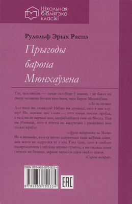 Р24 Прыгоды барона Мюнхаўзена : для дзяцей сярэд. шк. узросту / Рудольф Эрых Распэ ; пераказ для дзяцей Карнея Чукоўскага, пер. на беларус. мову Віталя Вольскага, маст. Аксана Красніцкая. — Мінск: Звязда, 2024. — 64 с. — (Школьная бібліятэка класікі).