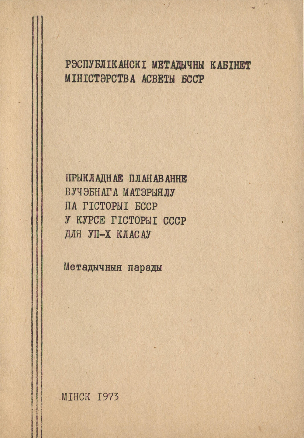 Прыкладнае планаванне вучэбнага матэрыялу па гісторыі БССР у курсе гісторыі СССР для VII-X класаў