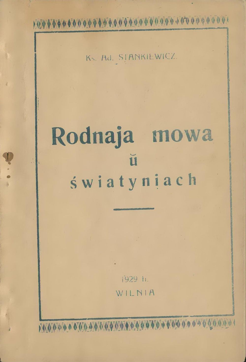 Wosza metaj majej bylo imiascic niekulki artykulaii u Xbryscijanskaj Dumcy" i wyjasnic u icb padstawowyja asnowy adnosinaii Katalickaba Kasciola da prawoii u Kasciele narodnycb' mowaii abulam, a betym samym i prawoii mowy bielaruskaj. DumaHza ja zrabic beta dziela tabo, kab narod nas, jaki adradzajecca da nowaba zyccia i zmabajecca za swaje prawy, wiedaii takza ab prawie swajej mowy й Kasciele i, wiedajucy beia' kab іткпййsia da zdabyccia betaba prawa.