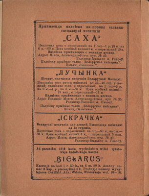 У цёплую, відную летнюю ночку пае-халі мы аднаго разу с Прануком на нач-лег. Ніхто больш не прыехаў да нас,—спаць не было як класьціся, дык сталі тэ аб тым, то аб сім гутарыць.
