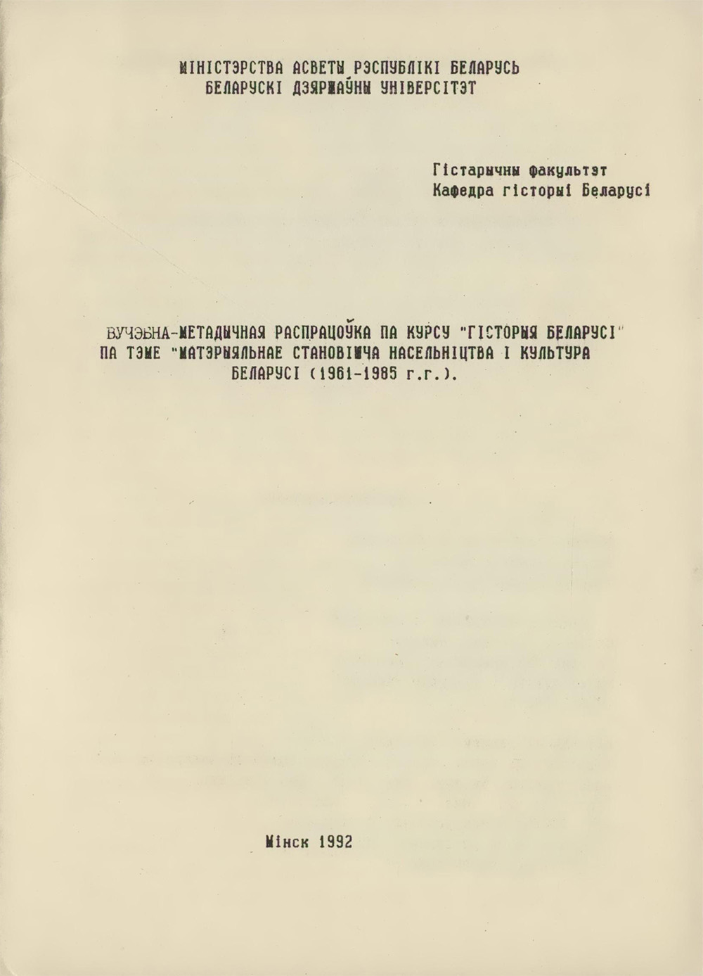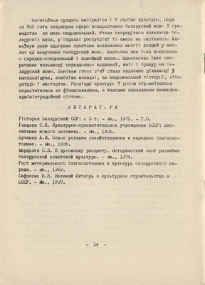 ВУЧЭШАМЕТЙДУЧНЙЯ РЙСПРЙЦОУКЙ Пй КУРСУ "ГІСТОРЫЯ БЕЛЙРУСГ Пй ТЗМЕ "ШЗРШЬНЙЕ СТЙНОВІІЧЙ НЙСЕЛЬНІЦТВЙ I КУЛЬТУРй БЕЛЙРУСІ (19611985 г.г.).